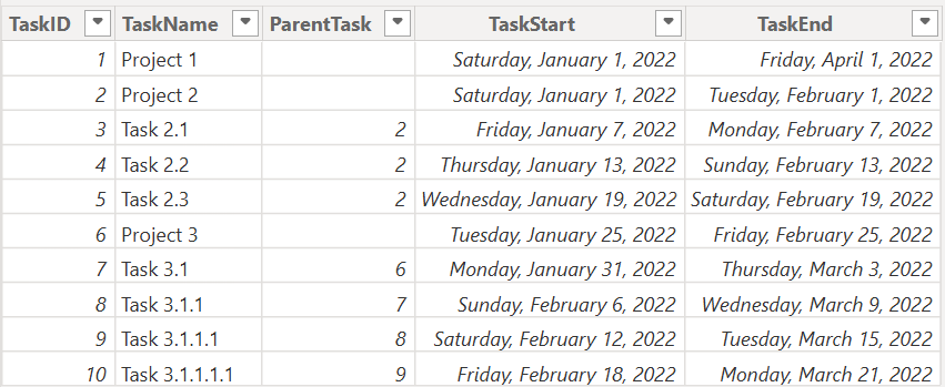 - Save and Publish to the Power BI Service for report viewers to see tasks/ projects in the specified timeframe.