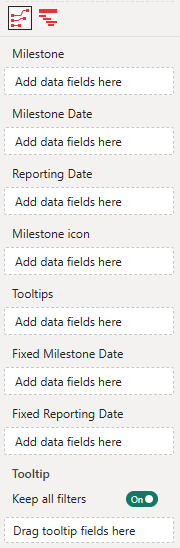 currentColorfor fill and border, allowing the icons to dynamically adapt to milestone color settings. For more information see Tutorial: Adding custom icons to Milestones. - Tooltips: The fields added here will show in the tooltip when the user hovers over a specific line marker. If multiple milestones are on the same point, they all will be visible in the tooltip.